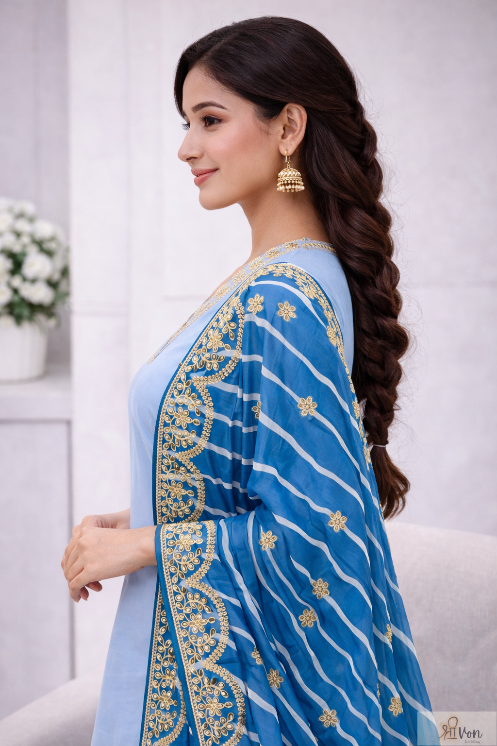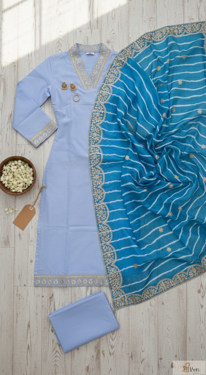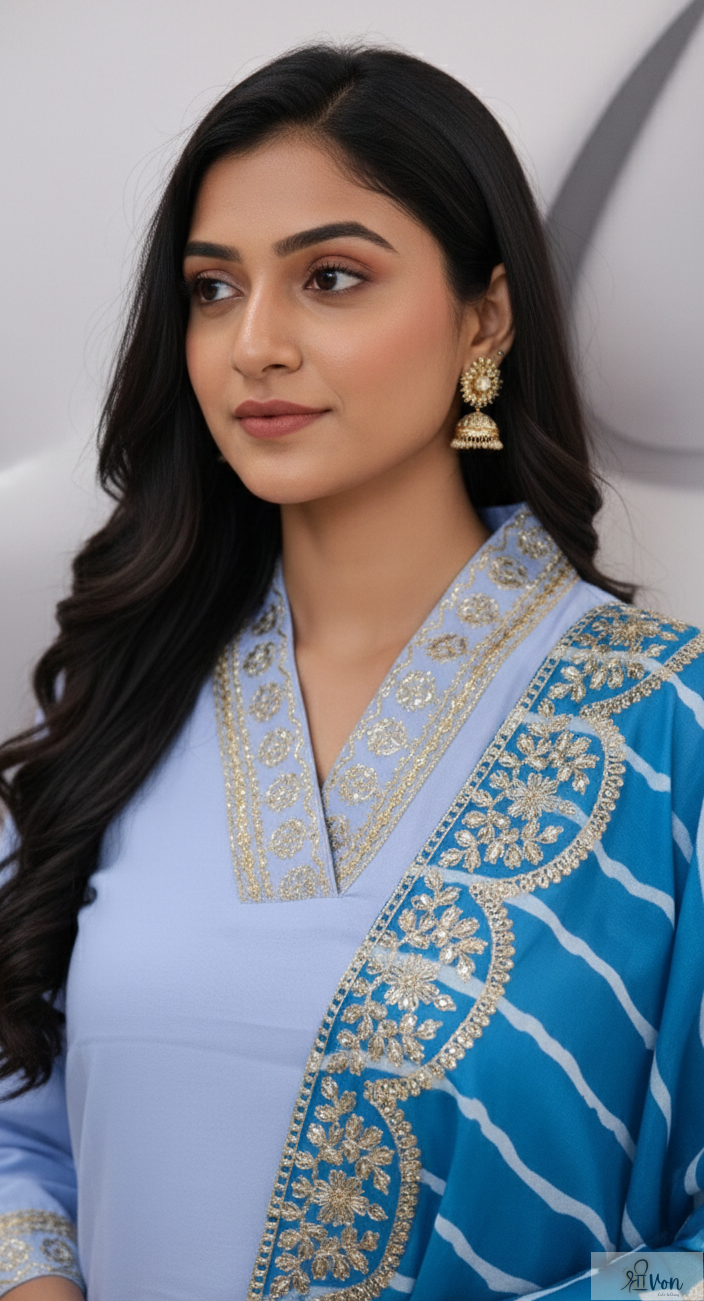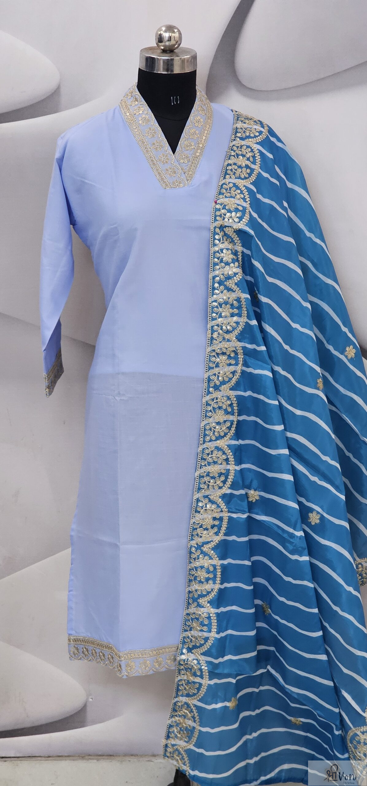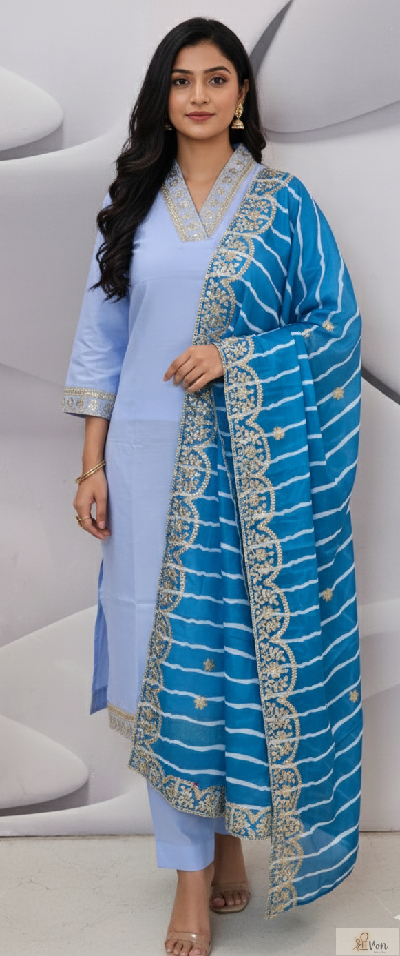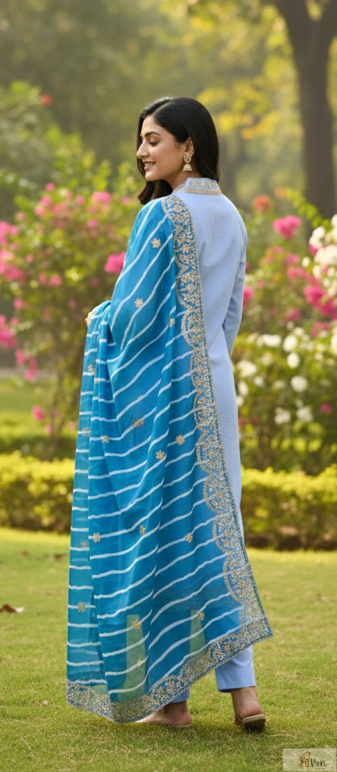 Contrast blue dupatta with striped pattern