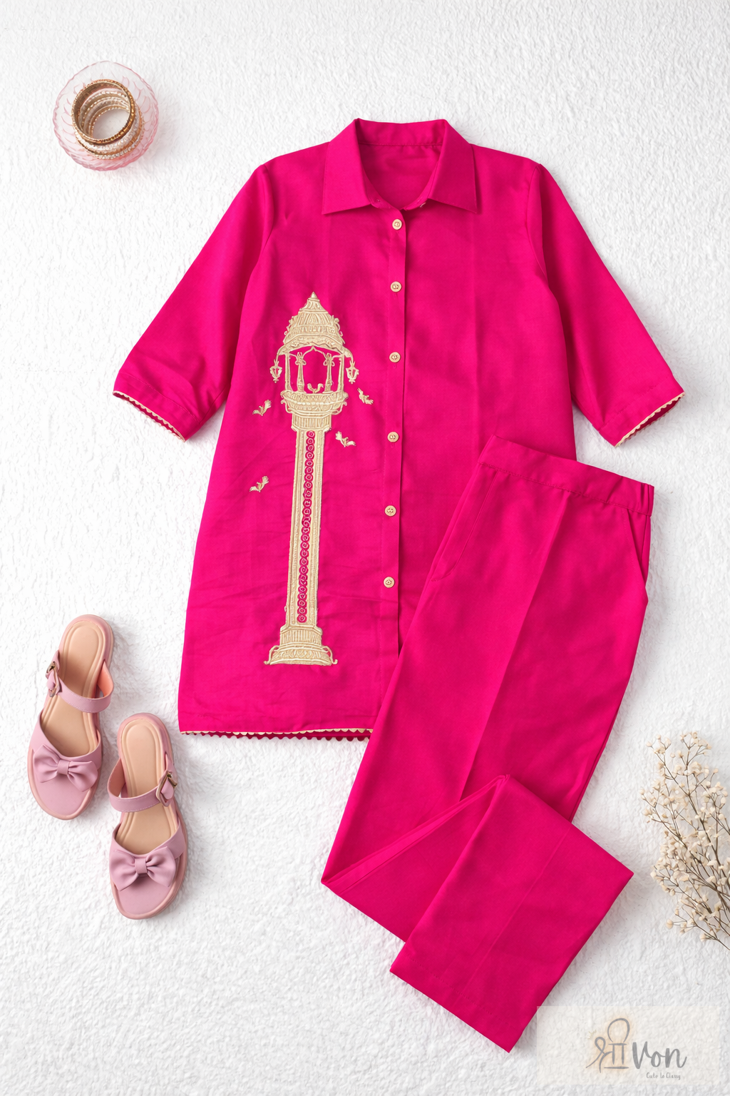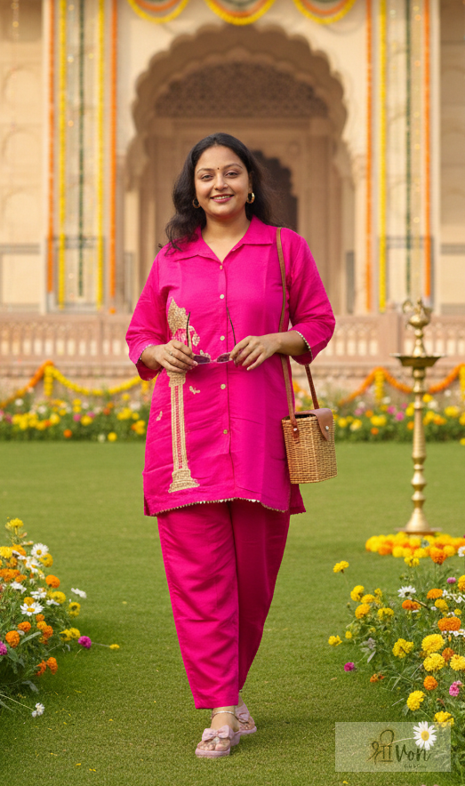 Fuchsia Pink Embroidered Co-ord Set