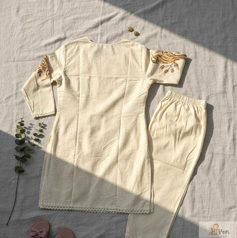 Elegant off-white cotton co-ord set designed for everyday comfort